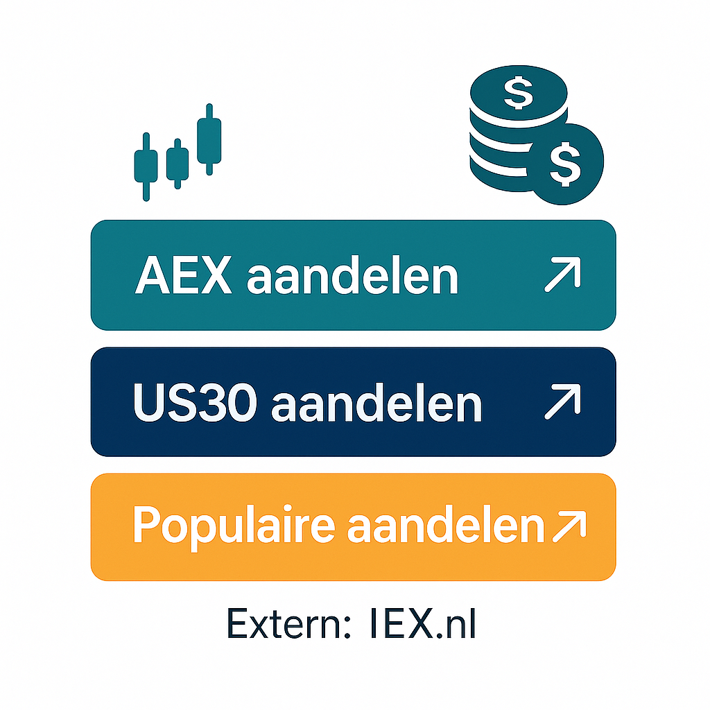 Bekijk realtime beurskoersen van alle AEX aandelen en alle US30 aandelen. Klik hieronder door naar IEX.nl waar je alle actuele beurskoersen vindt.